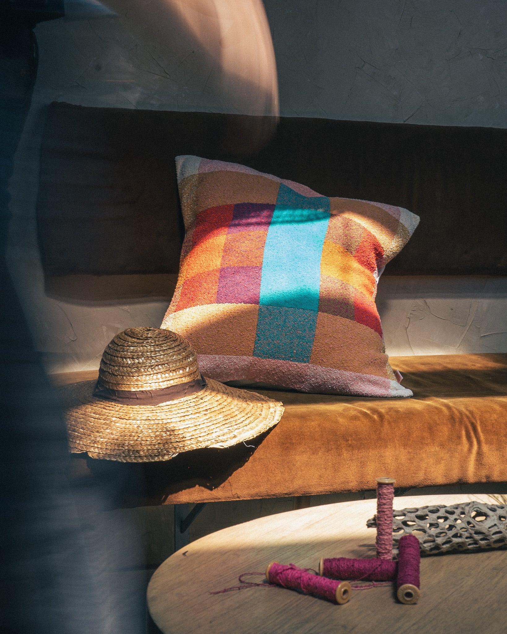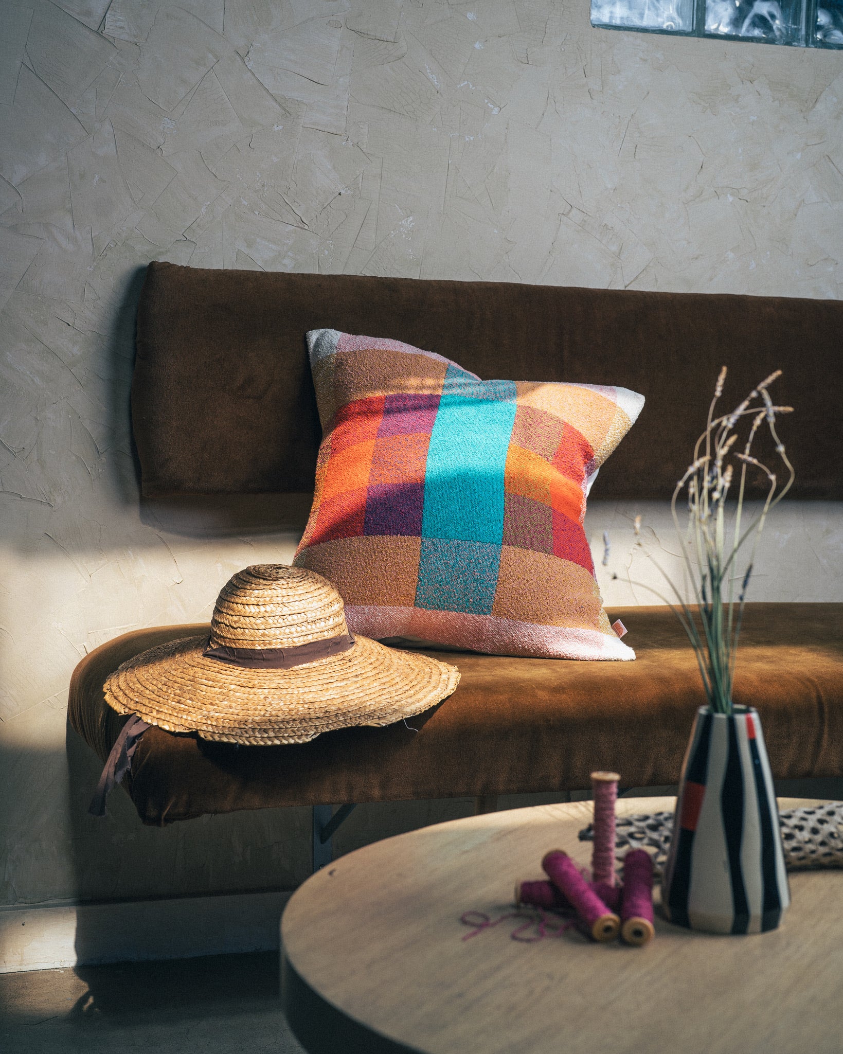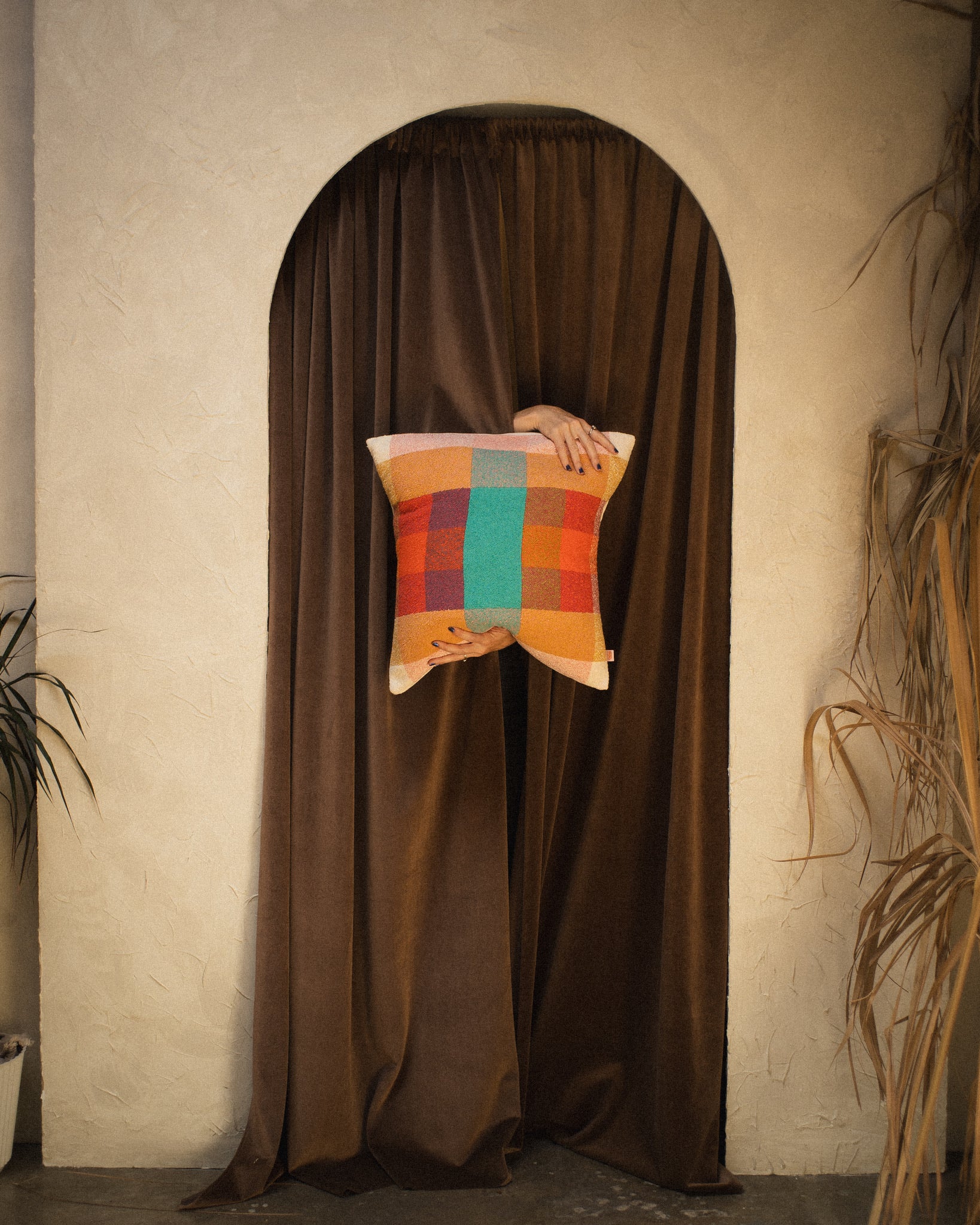 All pillow fronts are handwoven by Berly Sampson. Sewn together by Sew Co. Pillows are approximately 20x20 with a cream colored envelope backing.